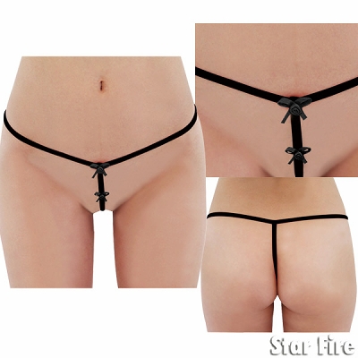 <EROX>男性陣の興奮度MAX!アナタの大事な秘部を、黒紐だけでセクシーに飾るTバックショーツ。フロント部分にさり気なく付いた、小さなリボンが超キュート!「今夜は勝負の日なの!」って時にオススメのセクシーランジェリーです。