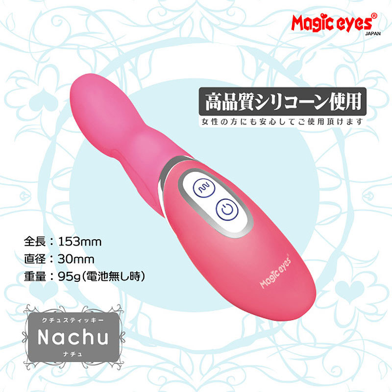 ●可愛くて人気の「クチュスティッキー」シリーズ新作●全長約15cm×最大径3cmの標準サイズ●弱・中・強に加えリズムパターンも装備した全7種振動●挿入するとエッグ型の先端がGスポットを的確刺激●ウェーブを生かしてアナルや乳首への刺激もOK●生活防水機能付き(水没不可)。
