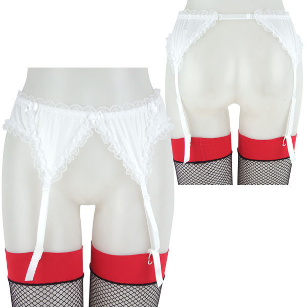 セクシーなガーターベルトもホワイトカラーならキュートに♪光沢素材とフリルレースのガーターベルト。