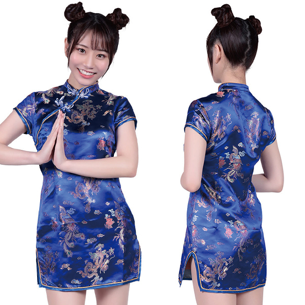 両サイドにスリットが入っているのでチラ見せもできるミニスカ丈なチャイナコスチュームです。