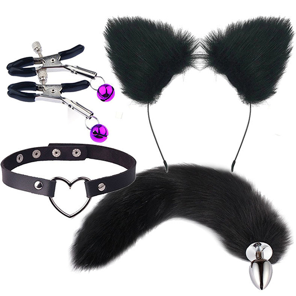 | 仕 様 | パッケージ:30.0×22.0×3.0cm 本体:耳カチューシャ約20cm×約20cm・首輪直径約12〜14cm・ップルクリップ(ハサミ口最大約1.6cm・長さ約5.6cm)・しっぽアナルプラグ直径約2.7cm・しっぽ長さ約40cm セット内容:耳カチューシャ、首輪、ニップルクリップ、しっぽアナルプラグ 原産国:中国 重量:本体135g |