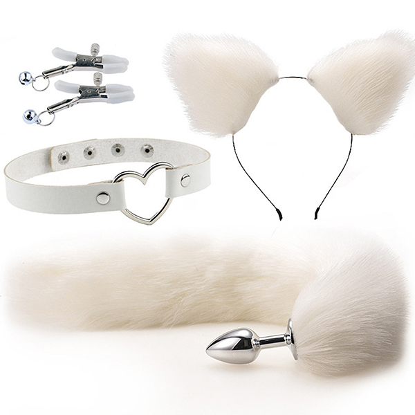 | 仕 様 | パッケージ:30.0×22.0×3.0cm 本体:耳カチューシャ約20cm×約20cm・首輪直径約12〜14cm・ップルクリップ(ハサミ口最大約1.6cm・長さ約5.6cm)・しっぽアナルプラグ直径約2.7cm・しっぽ長さ約40cm セット内容:耳カチューシャ、首輪、ニップルクリップ、しっぽアナルプラグ 原産国:中国 重量:本体135g |