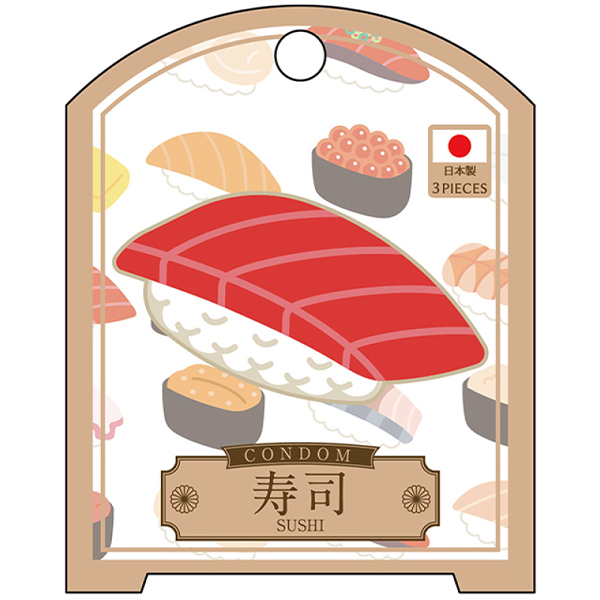 インバウンドのお土産にも最適!「和」をモチーフにしたコンドームです。天然ゴムラテックス素材のナチュラルタイプ・コンドームです。程よいサイズ感で多くの男性にフィットします。この製品は日本国内で製造されています、 安心してお使いください。コンドームの装着は大人の男のマナーです。使用方法を守って、正しくお使いください。●寿司 6個セット