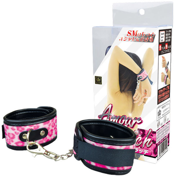 オシャレで可愛い♪ファッショナブルなSMグッズシリーズ「アムールクラッチ 手枷 豹ピンク」。