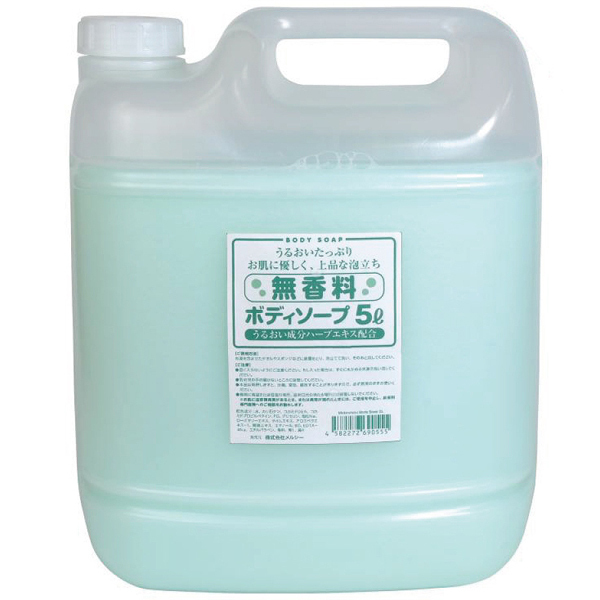 泡立ち抜群!お忍びのお客様へ匂いが移らないように配慮した無香料タイプのボディーソープ。毎日使う女性にも嬉しい♪潤い成分をたっぷり配合し、ハーブのエキスで貴方のお肌をしっかりガード!洗体エステ用としてもお使いいただけます。業務用や詰め替え用に、お得な大容量5Lサイズ