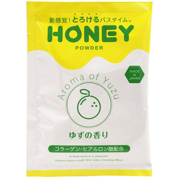 お風呂がまるごとローションに♪大人気のとろとろ入浴剤「honey」シリーズに、お手軽なパウダータイプの「ハニーパウダー ゆずの香り」が登場。