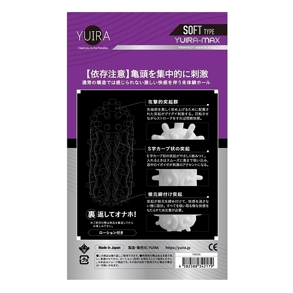 裏返してオナホ!あの人気商品とYUIRAのコラボ実現!簡易オナホがソフトバージョンで新登場!ハードと違い、やわらか素材でアナタを優しく包み込みます♪<選べる3タイプ><安心の日本製><ローション付き>依存注意、亀頭を集中的に刺激、通常の構造では感じられない激しい快感を伴う未体験ホール、攻撃的突起群、先端部をグイグイ刺激する突起配置。