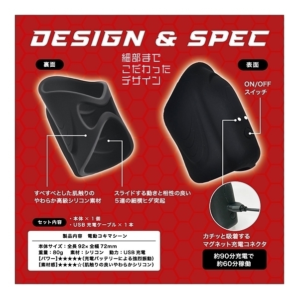 激コキ!衝撃快感が貴男を襲う!振動×シゴキによる、驚異の振動オナホールが新登場!いつもの手コキが、激烈快感のシェイクに大変身!!振動電源ONすれば、痺れるようなメガバイブレーション!さらに楽しめる振動アクションは、全10パターン!その激烈振動のハイパワーを実現させる、USB充電式バッテリー!本体内部の突起は、スライドするのにぴったりな5つの波形突起!すべすべとした肌触りの、やわらか高級シリコン素材!カチっと吸着する、マグネット充電コネクタ!約90分充電で、約60分稼働が可能!「スライド」は、上下にストロークする筒状モデル。