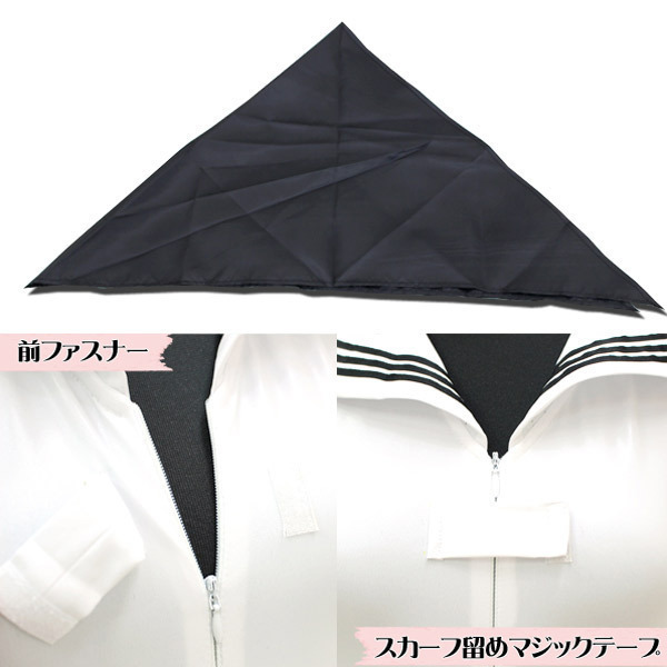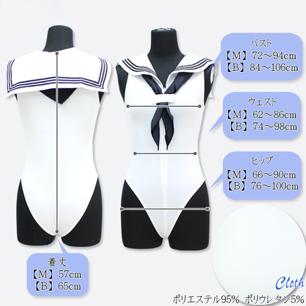 | 仕 様 | BIGサイズ:B84〜106cm・W74〜98cm・H76〜100cm 着丈65cm セット内容:レオタード(前ファスナー)、スカーフ(マジックテープ) 素材:ポリエステル95%、ポリウレタン5% セーラーノースリーブレオタード 色:白 |