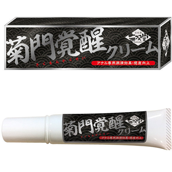 菊門覚醒クリームが新登場!潤滑と抗菌を両立した乳白色で無香料タイプのクリームで、潤滑効果と共に感度アップもサポート。衛生面を考慮したノズルチューブタイプなので使いたいところにすぐに注入でき、手早く塗布したりもできて便利!お菊さんも上機嫌です♪