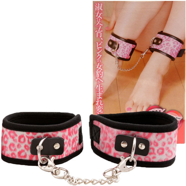 ●両足首に巻いて固定する定番足枷●ピンク×豹柄のキュートデザイン●本格的レザー風生地×ファー生地●マジックテープでカンタンに着脱●装着サイズも細かく自在調節可能●チェーン部分は取り外しOK。