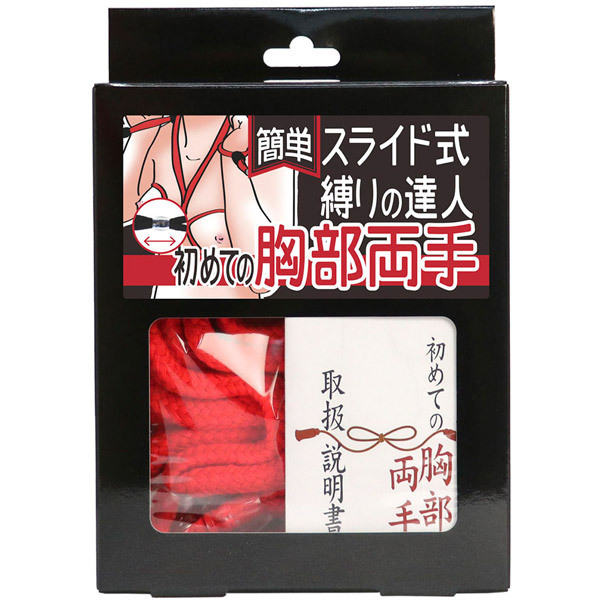 ビーズ玉をスライドさせるだけ♪柔らかな肌触りの綿製SMロープ「簡単スライド式縛りの達人 初めての胸部両手(赤)」。